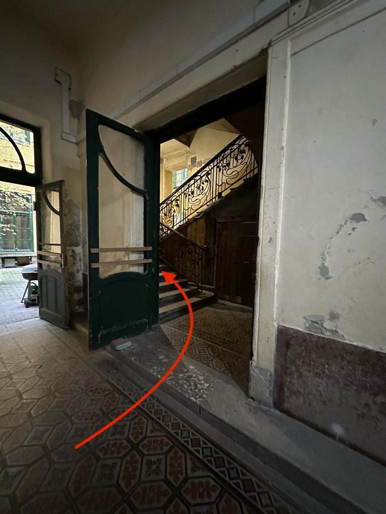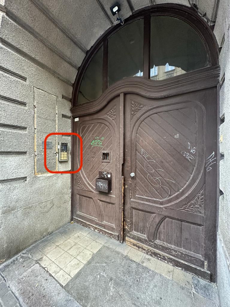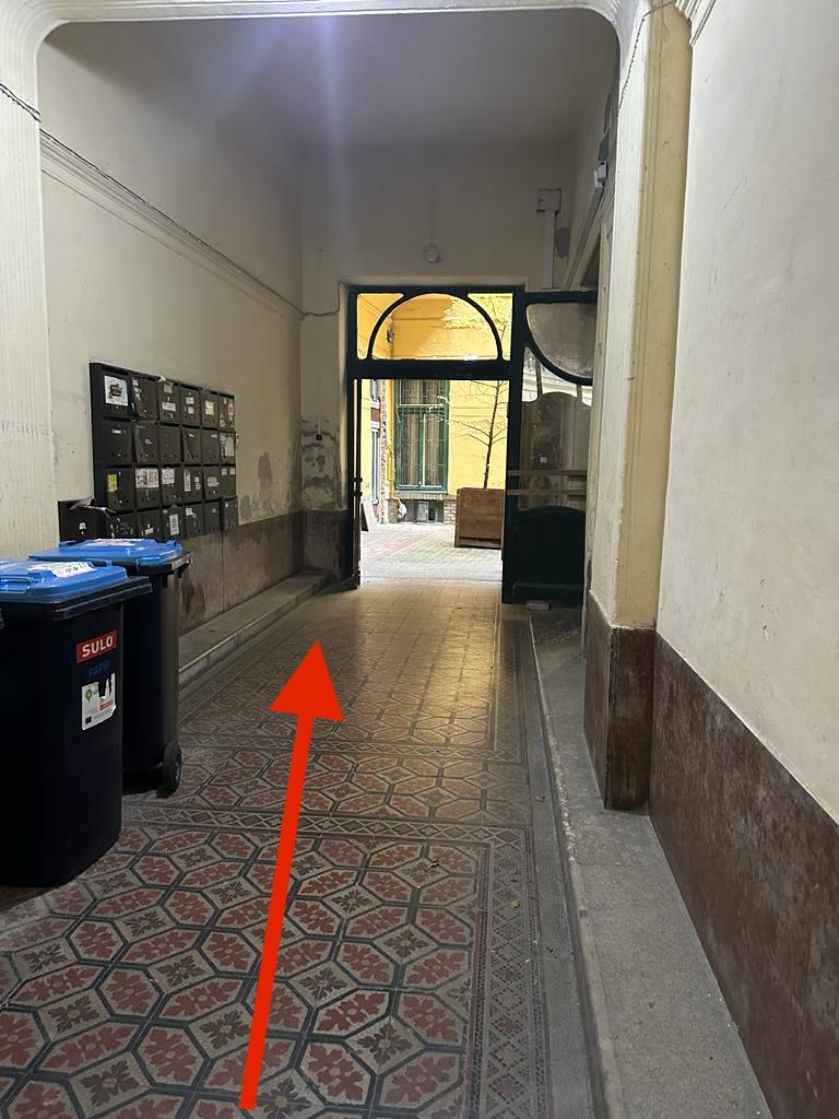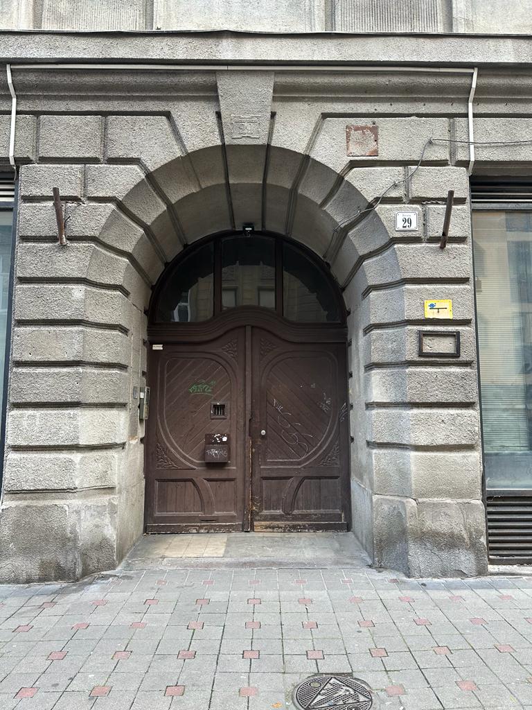 - The entrance to the building is the brown door with number 29 above the door.