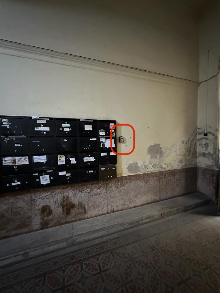- As you enter the building, walk past the mailboxes, and on the wall you will see the lockbox (you will receive the lockbox code from your host). This lockbox contains only the key to the gate on the 1st floor. MAKE SURE TO CLOSE THE LOCKBOX AFTER RETRIEVING THE KEYS AND SCRAMBLE THE NUMBERS.