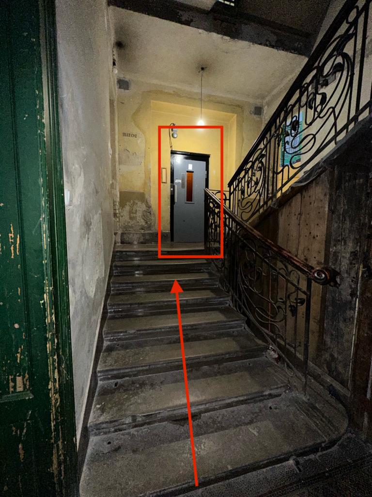 4. The second door to your left is the entrance to apartment number 1-3, labeled “Rose House” on the door.