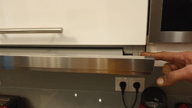 Above the stove is an exhaust fan and light. Pull it out. The switches are on the right side.