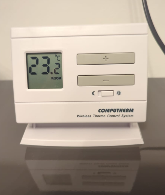 The radiators are controlled by a thermostat remote. A good temperature to set for heat is 20 degrees. Press the + to turn the temperature up. Press the – to turn the temperature down.