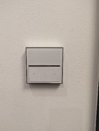The street side windows have shutters controlled electronically. Press the up arrow to go up. Press the down arrow to go down. Press the middle button to stop.