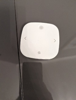 There is a light in the living room controlled by a remote. Press the large sun to turn on the light. Press the small sun to turn on a low light. Double press to turn off.