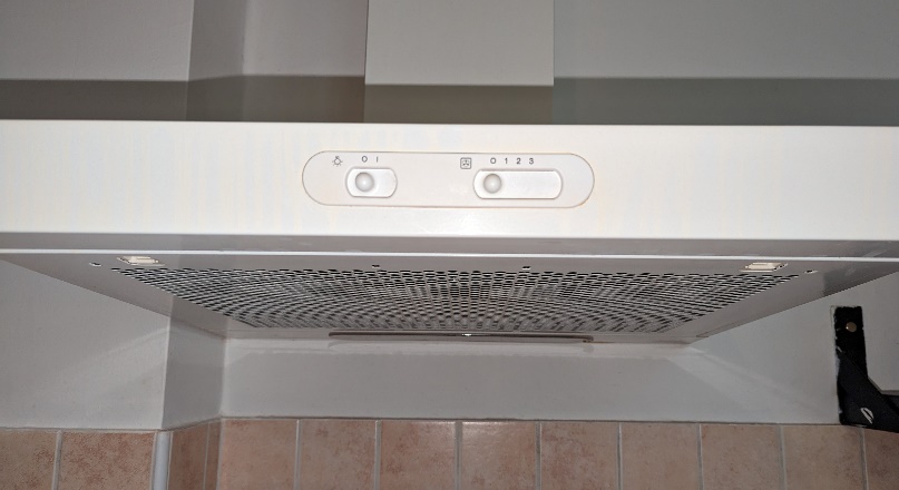 There is an exhaust fan and light above the stovetop. Turn the light on with the left switch. Turn on and choose the fan speed using the right switch.
